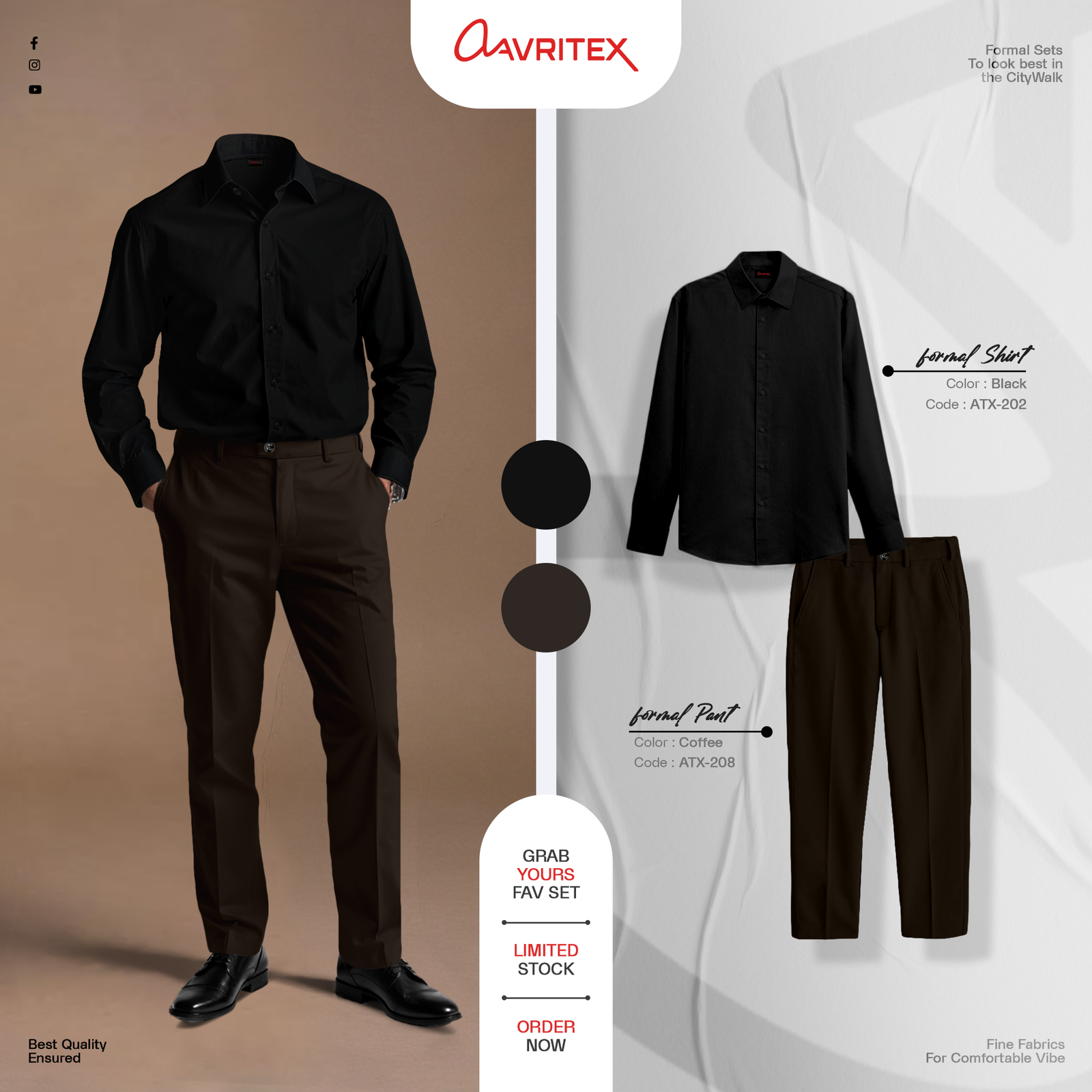 Formal Black Shirt & Coffee Pant Combo
