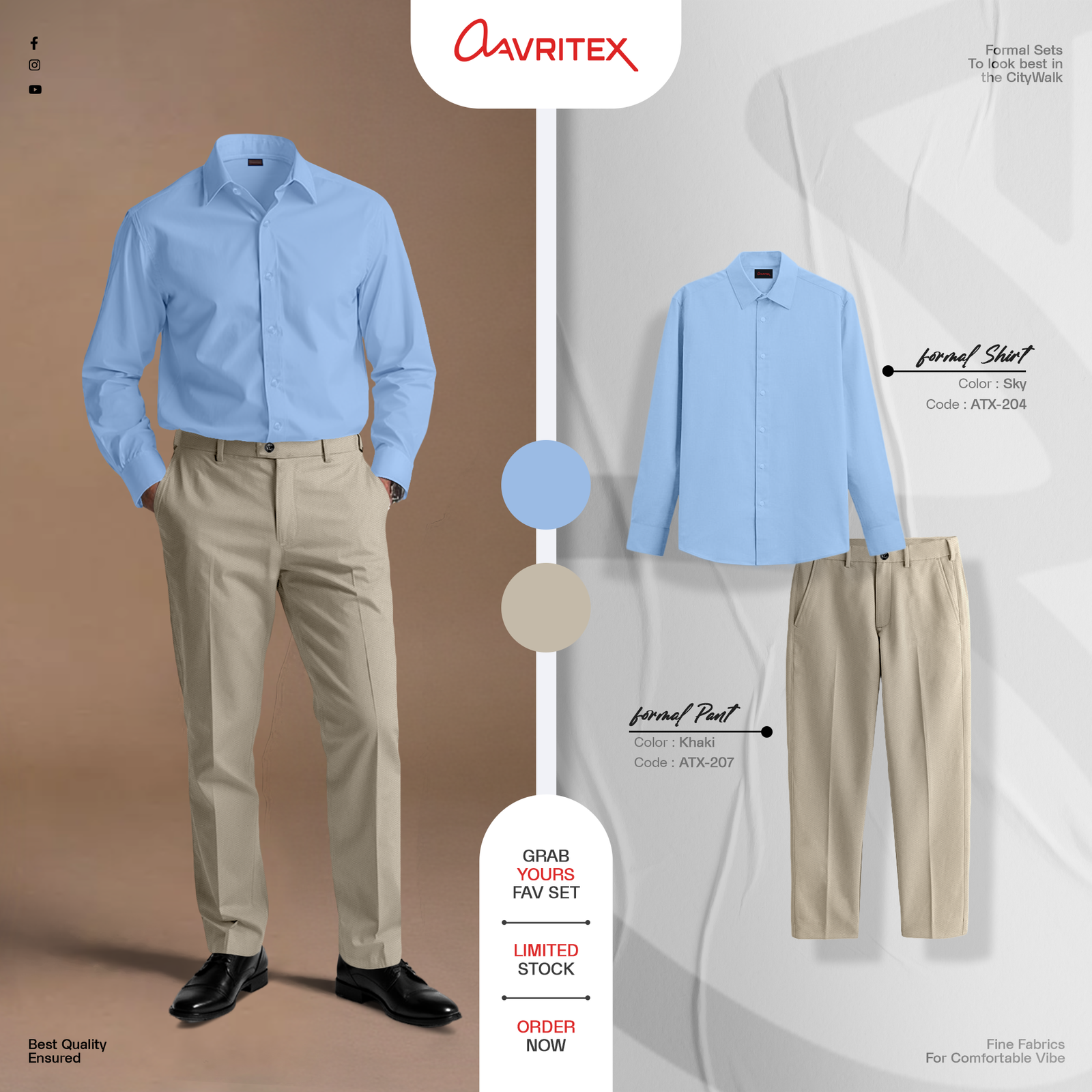 Formal Sky Shirt & Coffee Pant Combo