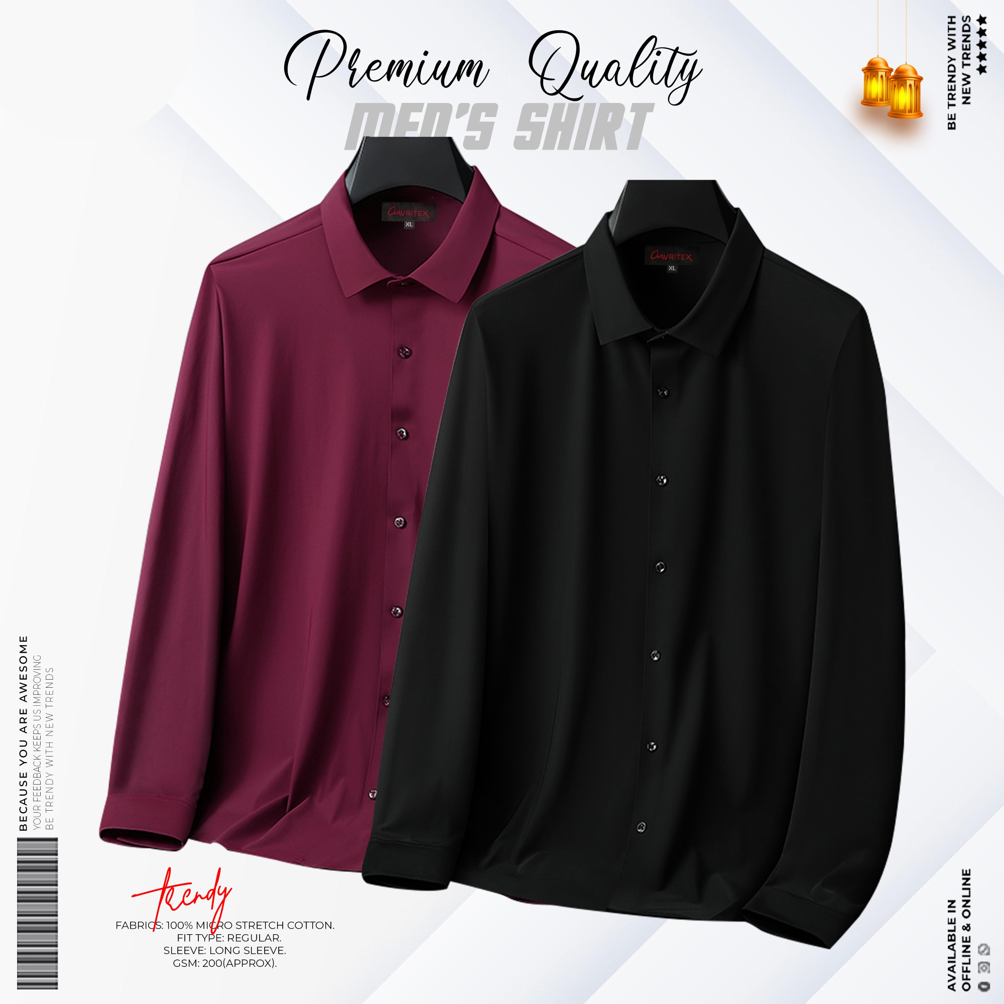Premium MicroStitch Shirt Maroon, Purple & Navy Blue Color