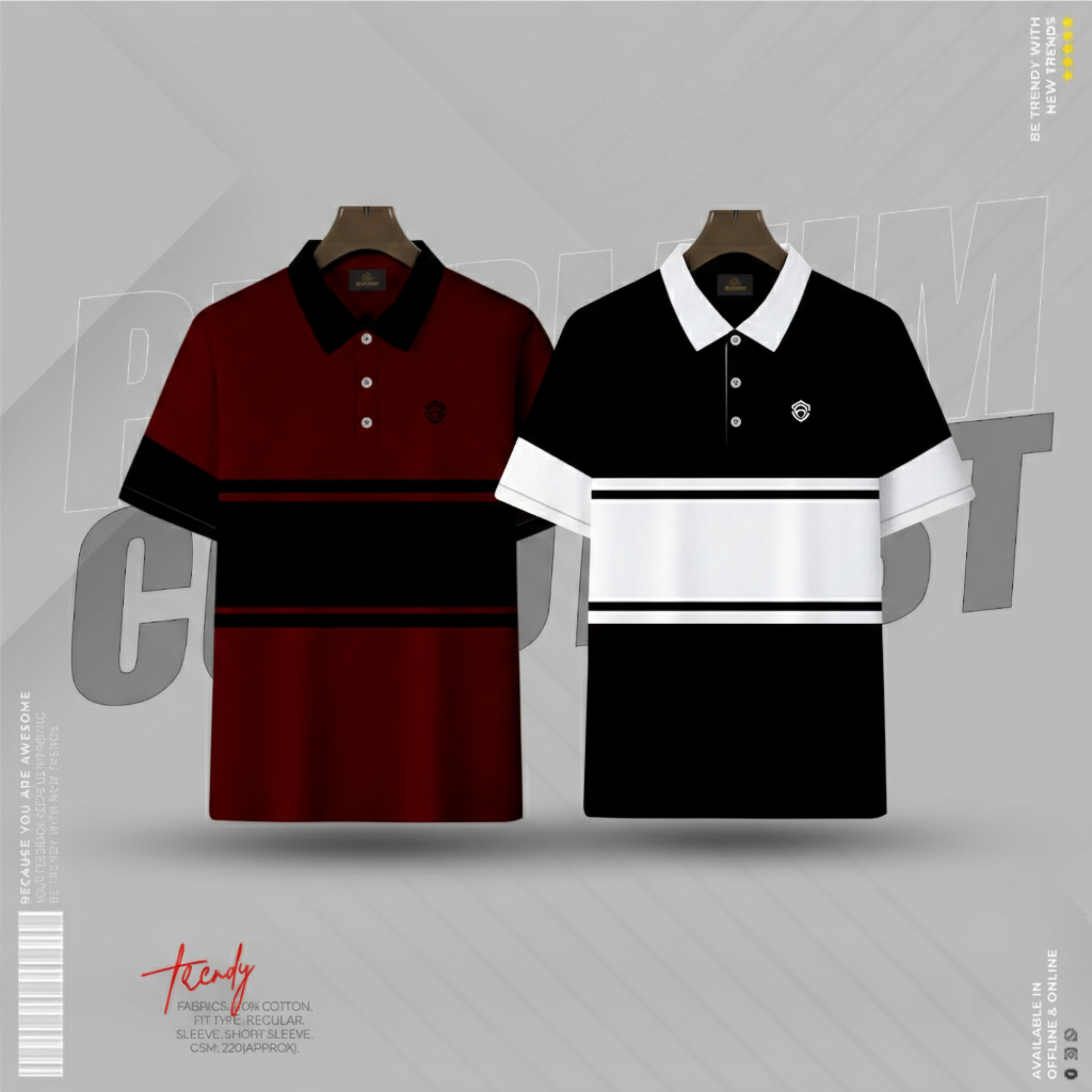 Premium Basic Polo Shirt Ash & Maroon Color