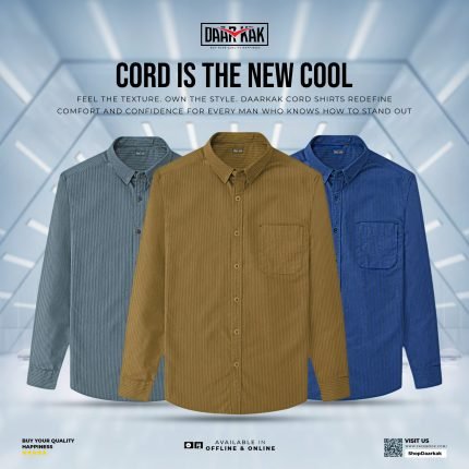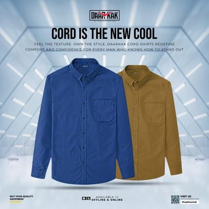Premium Cord Shirt Ash, Navy Blue & Golden Color